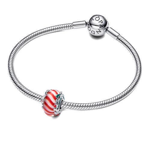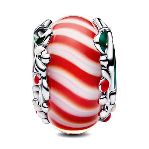 A sweet burst of holiday cheer. This sterling silver charm features vibrant red and white Murano glass shaped like candy. Expertly crafted details evoke nostalgia and joy — the perfect symbol of seasonal sweetness.