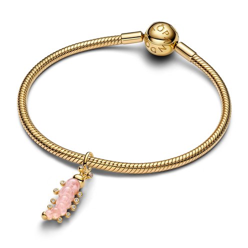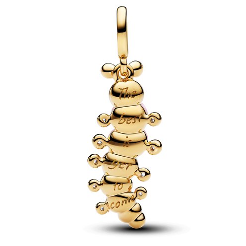 Add our caterpillar to your collection as a reminder to keep growing and transforming. Crafted in 14k gold plating with pink Murano glass and sparkling stones, our charm is engraved with "The best is yet to come".