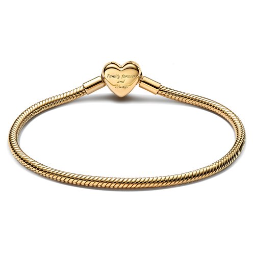 Keep loved ones close with a timeless bracelet featuring a heart-shaped clasp, sparkling accents and a infinity symbol honoring family bonds.