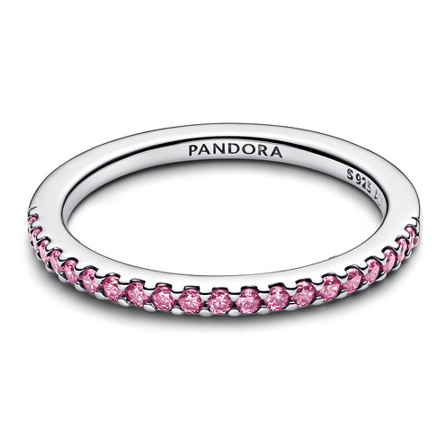 Endless shine for your endless love. This sterling silver band is set with pink cubic zirconia all the way around, symbolising connection that never ends and brilliance from every angle.