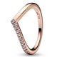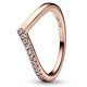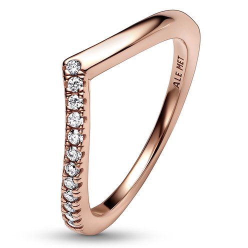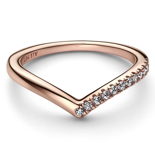 Make all your wishes come true with this delicate Sparkling Wishbone Ring, half-lined with 12 claw-set round brilliant-cut cubic zirconia stones on a 14k rose gold-plated band. Simple yet elegant, this wishbone-shaped ring can be worn on its own as a shimmering statement, or paired with other Pandora stackable rings to create a unique, highly individual look.