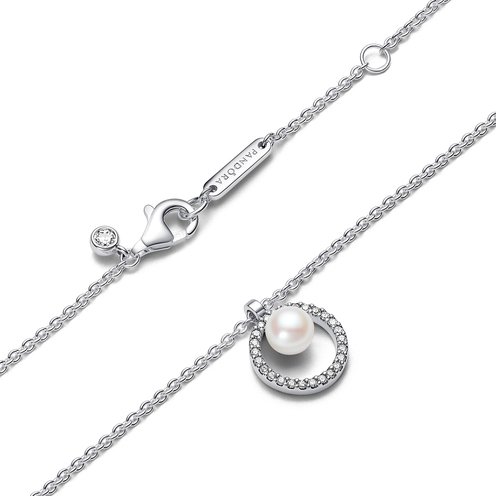 The pearl pendant gracefully slides along the chain, showcasing Pandora's signature craftsmanship. Embrace timeless beauty and versatility. Perfect for special occasions or adding a touch of sophistication to everyday wear.