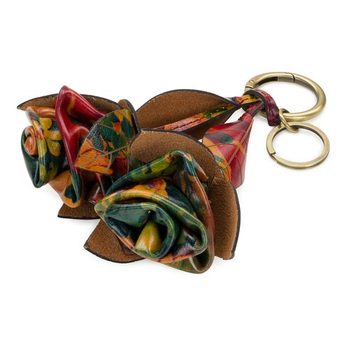 Inspired by the timeless elegance of blooming roses, this accessory adds a touch of nature's beauty to your daily routine. The two rose stems, complete with leaves and blooms, are crafted in full-grain leather, and this elegant bag charm features a slide-on key ring as well as a quick-release ring.�