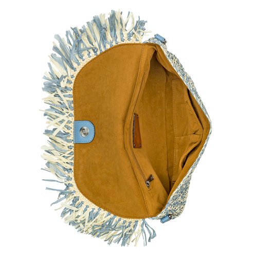 Meticulously woven by hand in 100% paper straw, the Loulia effortlessly combines elegance and practicality. Trimmed in Vintage Distressed Leather, its sleek envelope shape and gently rounded edges create a soft, modern silhouette perfect for sunny weather outfits. The unique flap is adorned with lush fringe. Carry it as a chic crossbody for hands-free convenience or as an elegant clutch for evening outings. Whether you're strolling through summer markets or attending a special event, the Loulia ensures you do so in style.