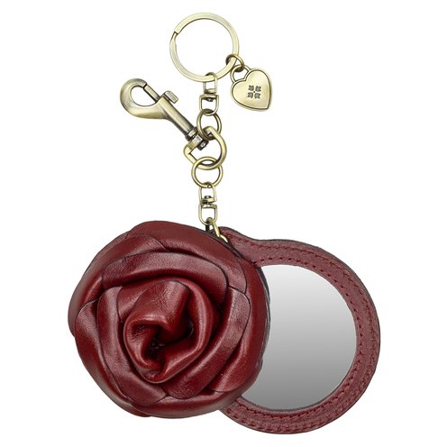 Finding your keys and refreshing your makeup couldn't be easier or more glamorous than with the Rose Bag Charm. Cute, colorful, and convenient, simply slide the cover to see the mirror, which is protected in its leather rose.