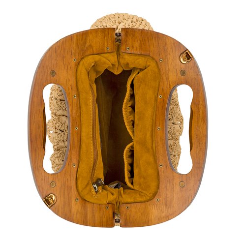 The Sandrine Crossbody blends vintage whimsy with modern ease. Its soft exterior is complemented by a smooth wooden handle for a touch of natural charm. Whether worn over the shoulder or carried by hand, the Sandrine adds a playful, feminine accent to any look, perfect for sunny strolls, picnics, or an afternoon caf� escape.