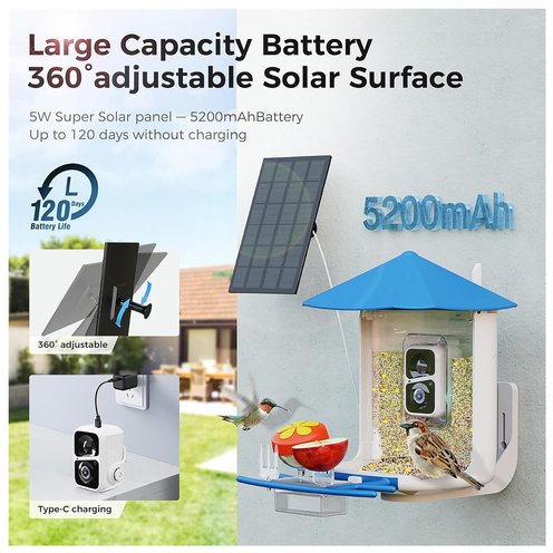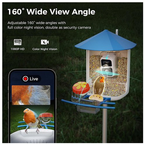 - Smart bird feeder with advanced AI camera, identifies over 11,000 bird species