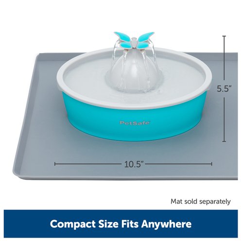 This fountain has a shorter base, which gives kittens easier access to the fountain. The fountain also has a raised tray, so even if the power goes out, your cat will still have access to water. The wide tray is whisker-friendly, which keeps your cat’s sensitive whiskers from touching the sides while drinking. To keep water fresh, we use dual-filtration technology to remove pet hair, debris, bad tastes and odors.
