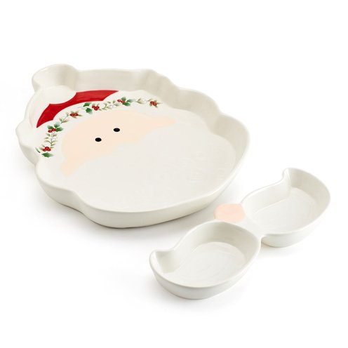 - TIMELESS HOLIDAY MOTIF: this delightful platter with dip bowl in vibrant Christmas colors features an adorable Santa face and a festive Winterberry accent