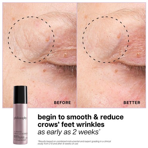 The philosophy Ultimate Miracle Worker Lift & Firm Face & Neck Serum is powered by a cutting-edge combination of clinical?strength retinol technology boosted with retinal—the closest molecule to prescription retinoids—to visibly lift, firm, and reduce the look of fine lines and wrinkles on the face & neck. Designed to create a more sculpted and youthful appearance, this face serum is dermatologist?developed, fragrance?free, and suitable for all skin types, including sensitive skin and first?time retinol users.