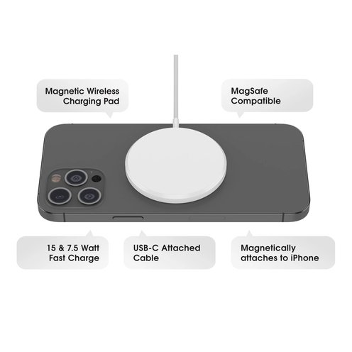 PhoneSuit MagPad | Apple MagSafe Magnetic Wireless Charging Pad. Magnets attach to your MagSafe iPhone automatically | 15, 10 & 7.5 Watt fast wireless charging speeds. The MagPad has an attached USB-C cable for ultra-convenient charging.