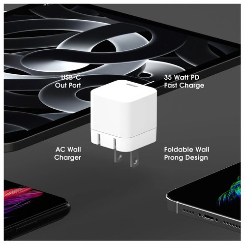 The PhoneSuit Nova 35 Watt GaN Wall Charger is a Minimal, Ultra-Small Foldable design with High-Speed Charging capabilities. Designed to Charge at home, office & traveling. USB-C X 1. An ultra compact design, foldable prongs & high-speed 35 Wattoutput. Fit in your pocket, bag or purse. Power up while at home, travel or on the go. Charge devices by USB such as iPhone, Smartphones, iPad, Tablets, AirPods, Bluetooth & More. Quality design, safety & protection assure your devices are getting clean, reliable power.