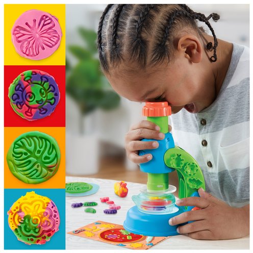 - LET'S PLAY PRETEND SCIENTIST: Explore and create with this Play-Doh toy featuring a play microscope that really lights up (requires 3 AAA batteries, not included)