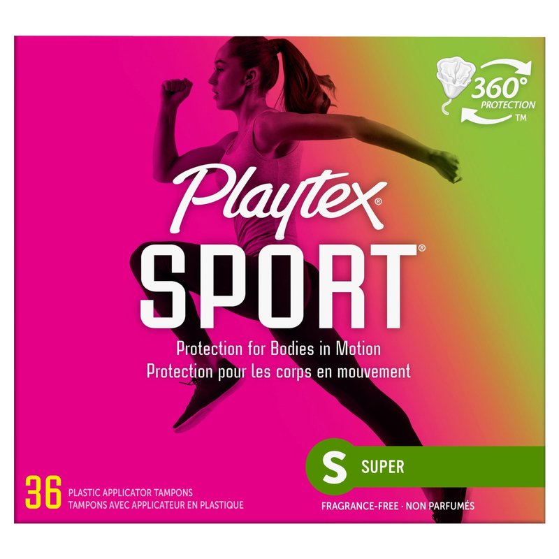360 degrees protection. Protection for bodies in motion. Fragrance Free. Absorbency. Absorbency range. Light less than 6 g. Super 9-12 g. Super plus 12-15 g. The absorbencies of tampon brands have been standardized. Use this chart to compare Playtex tampon absorbencies to other brands. Select the minimum absorbency needed to control your menstrual flow in order to reduce the risk of getting TSS. Designed to fit your body and its every move. A protective leakage barrier so you can Play On! Flex Fit: Flexible interlocking fibers work quickly to trap leaks. Leak Defense: Anti-leak back up layer for extra protection. Contoured tip & no-slip grip applicator. For comfortable, precise placement. Return box and unused tampons if you have concerns. Made in U.S.A.
