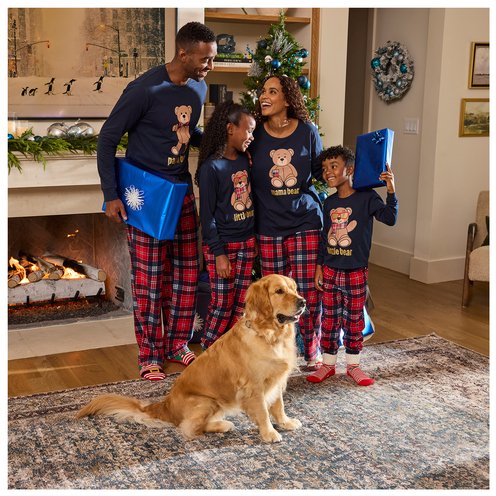 Cozy Family Bear Matching PJ Set featuring a long sleeve top with an adorable bear graphic and "Little Bear" print-perfect for cozy nights and family matching moments.