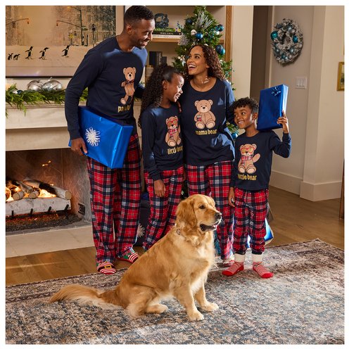 Cozy Family Bear Matching PJ Set featuring a long sleeve top with an adorable bear graphic and "Little Bear" print-perfect for cozy nights and family matching moments.