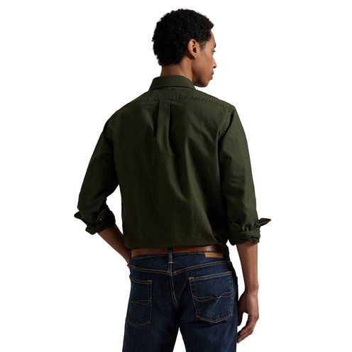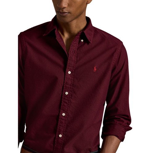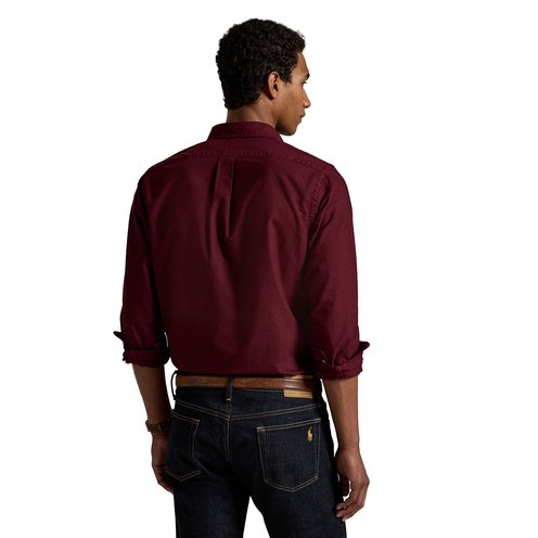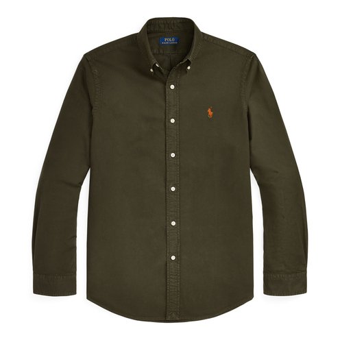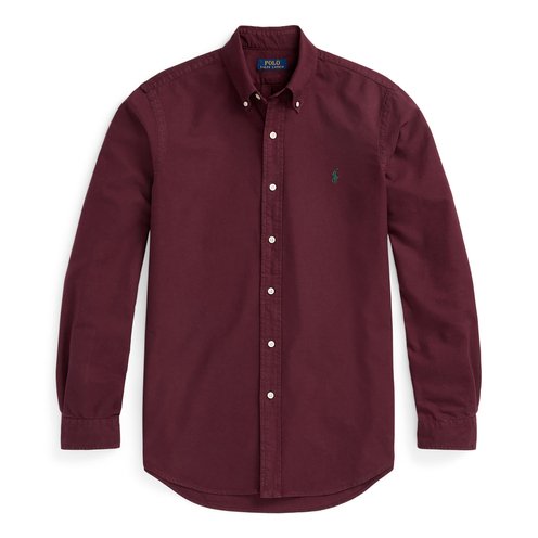 The oxford shirt made its debut very early on in Ralph Lauren’s designs, and since then it has solidified its status as a pillar of the Polo look. Our fabric is developed with a secret wash that gives it instant character, ease, and a heathered softness—what we call the perfect “rumple.” The formula is so unique, it’s been kept in a safe for more than three decades. Today, Mr. Lauren continues to create countless variations of his iconic shirt, including this garment-dyed version that is finished with our signature embroidered Pony.