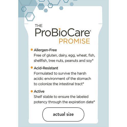 ProBioCare® uses Drcaps® vegetable capsules designed to help protect probiotics from the harsh acidic environment of the stomach and comes in a new desiccant-lined bottle for shelf stability.