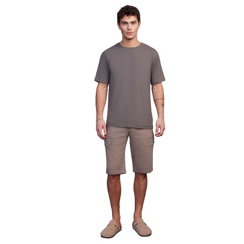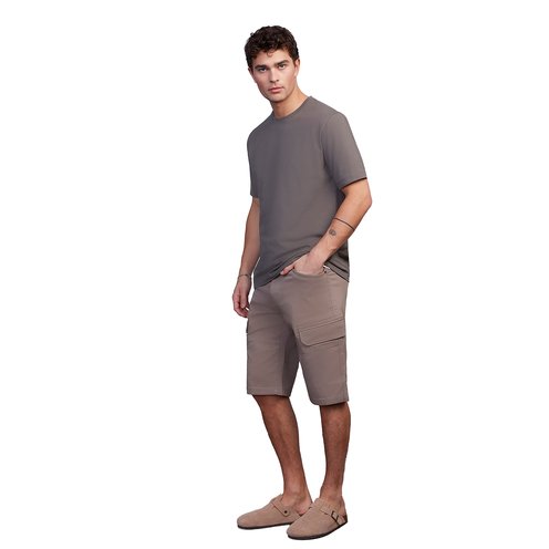 The Men's Solid Bungee Capri Shorts by PROJEK RAW feature a 13" inseam and a button-fly closure for a sleek, modern look. Designed with cargo pockets for added functionality, these shorts offer both style and practicality. Perfect for warm weather, they provide a versatile, laid-back option for casual outings.
