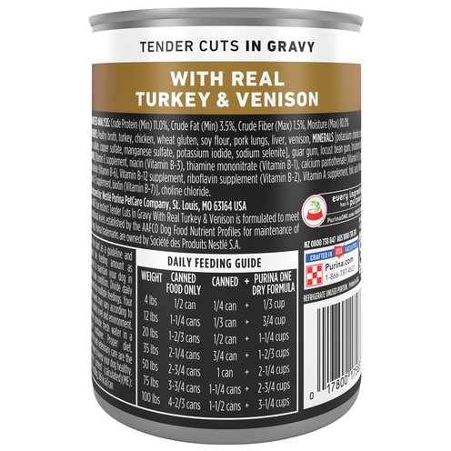 Classic Ground, Adult Classic ground. Grain-free formula. Nutrient-Dense formula. 0% Fillers. Natural with added vitamins, minerals & nutrients. No poultry by-products. Real turkey no.1 ingredient. purina.com. purinaone.com/ingredients. Every ingredient has a purpose: PurinaOne.com/Ingredients. Please recycle. Crafted in USA facilities. Printed in USA.