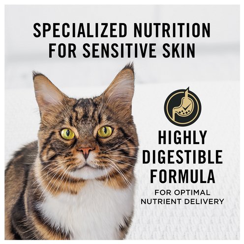 Fill your cats’ dish with Purina Pro Plan Sensitive Skin and Stomach Dry Cat Food Turkey and Oat Meal Formula features real turkey as the first ingredient.