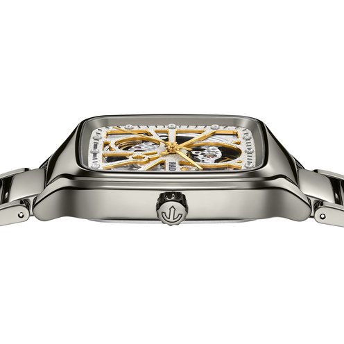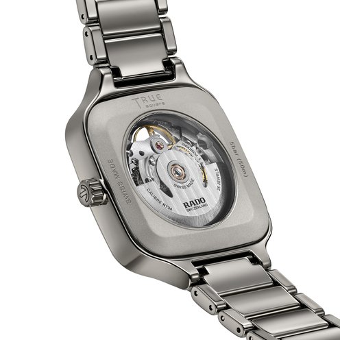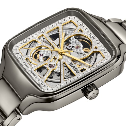 The Rado True Square Open Heart Sparkling is where innovation meets radiance, blending high-tech materials with dazzling details. Its open heart dial reveals the Rado calibre R734 automatic movement, with 80 hours of power reserve and Côtes de Gen�ve finishing, offering a glimpse into the beating heart of the watch. The polished plasma high-tech ceramic case and bracelet ensure durability and comfort, while the sapphire crystal with anti-reflective coating provides clarity from every angle. On the dial, sparkling diamond powder decoration enhances the metallic textures, paired with twelve Top Wesselton diamonds that shimmer as hour markers, adding a refined brilliance to the design. Yellow gold accents and Super-LumiNova® details ensure readability, while the seamless monobloc case construction underscores its modern character. Water resistant to 50 meters, the True Square Open Heart Sparkling is more than a watch - it is a statement of luxury, light, and enduring craftsmanship.