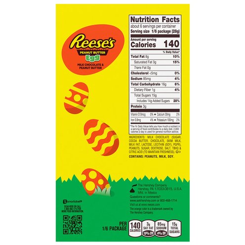 Why have snack size REESE'S Eggs when you can have one 6 ounce REESE'S Milk Chocolate Peanut Butter Giant Egg? Bigger is always better, especially when it's our deliciously smooth milk chocolate and creamy peanut butter. This egg-shaped treat is a great addition to an Easter basket or keep it to yourself for some big-time snacking.