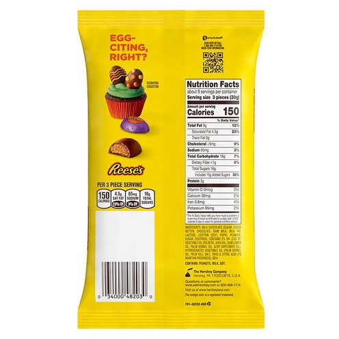 Contains one (1) 9.1-ounce bag of REESE'S Milk Chocolate Peanut Butter Creme Eggs Candy