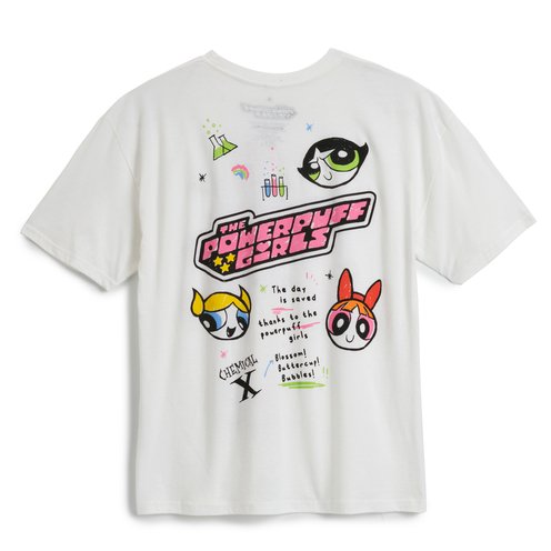 Officially licensed soft cotton Power Puff "Sketchbook No Sleeve" Junior Crew Short Sleeve Tee.