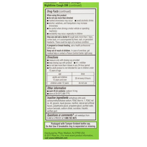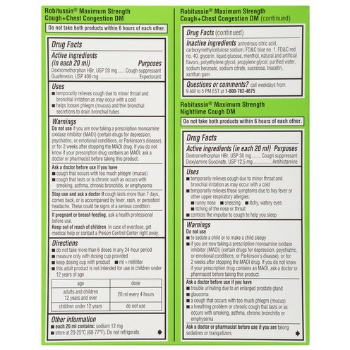 - Robitussin Maximum Strength Nighttime Cough DM (in each 20 mL)