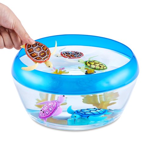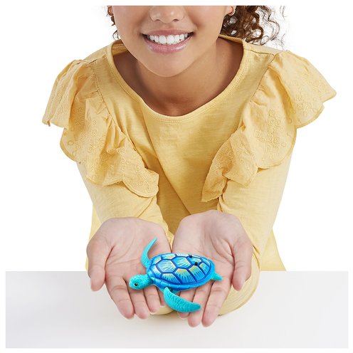 The all new Robo Turtle by ZURU is the ultimate realistic robo pet! From land to sea and everything inbetween these tropical turtles come to life with epic robotic technology. Drop your turtle into water to watch it come to life, or leave it on land to watch it crawl in the sun! You won't believe your eyes at the ultra-realistic robo technology. Take your Robo Turtle for a swim in the pool or place it in a water jug to prank your family! There are 4 colorful Robo Turtles to choose from, collect them all to complete your Robo Aquarium! These Robo Turtles are more than alive- they're Robo Alive!