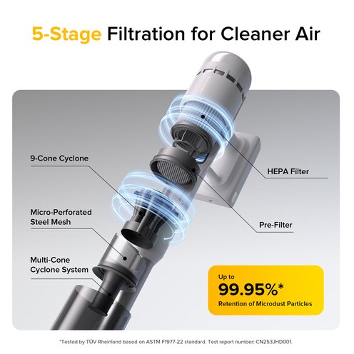 Experience a smarter way to clean with the Roborock H60. Designed for effortless deep cleaning, it features a flexible wand to reach tricky spots, powerful suction to tackle dirt with ease, and a long-lasting battery for uninterrupted cleaning. The green light illumination uncovers hidden dust for a more thorough clean, while the advanced filtration system helps keep your home's air fresh by reducing secondary pollution.