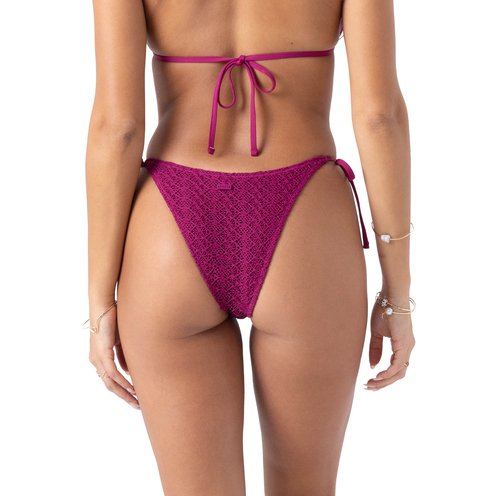 Roxy's Crochet Tie Side Cheeky Bottom blends textured crochet with flirty beach style. Adjustable side ties and cheeky coverage create a playful look made for sun-drenched days.