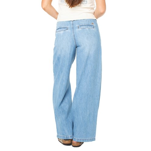 The Roxy Kalani 2 Wide Leg Denim Pants offer a laid-back vibe with their soft cotton-linen blend denim and wide-leg design.