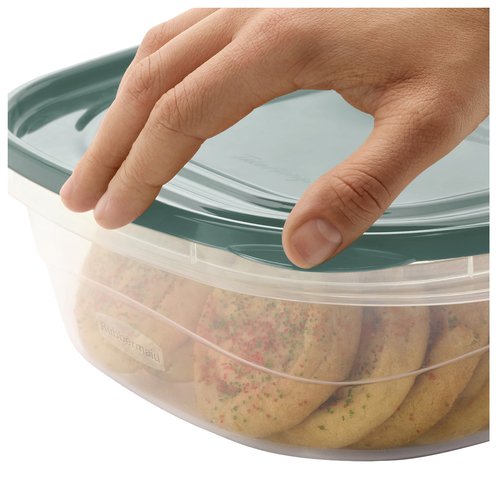 Add some extra cheery style and fun to holiday food storage! Rubbermaid TakeAlongs with festive blue spruce lids fit in perfectly with holiday decor and add a special touch to cookies and other sweet gifts. Perfect for all your seasonal plans, these square food storage containers with lids are all you need for worry-free food transportation to and from loved ones' homes while bringing back lots of delicious leftovers for yourself. The 5.2 cup container is ideal for storing and taking sides, like sweet potatoes or crispy Brussels sprouts, on the go. The Quik Clik Seal lids make an audible click when securely closed to seal in the freshness and avoid spills. Ridges on the lids add stability to stacking during travel and also save valuable space in the fridge and cabinets. This set includes four BPA-free lids and containers that are top-rack dishwasher-safe for easy cleaning; bases are microwave-safe for reheating. Enjoy a stress-free and delicious holiday season with TakeAlongs!