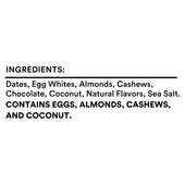 We put the bar in the coconut. Or vice versa. Our Coconut Chocolate protein bars are made with sweet coconut, 100% chocolate and a few other simple ingredients - egg whites for protein, dates to bind and nuts for texture. These Coconut Chocolate bars taste just as good as they sound.