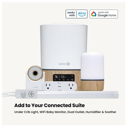 The Dual Smart Outlet allows you to control almost any electrical device (from lamps to bottle warmers) by making it smart. Independently power and manage two electrical devices when plugged into the Dual Smart Outlet. Set a timer, manage a schedule, or create a custom routine. Protect curious little ones from touching unused outlets with two Safety 1st Ultra Clear Plug Protectors (included). This outlet uses the Safety 1st Connected App which is the only app that empowers parents to create the optimal environment, set the mood, monitor, and comfort their child—anytime, from anywhere. This easy-to-use, family friendly app seamlessly controls and manages every device in the Connected Suite giving parents the confidence and peace of mind they need to stay connected to their child even when they’re apart