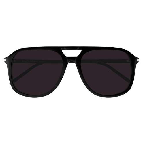 A classic soft-squared double-bridge shape characterized by a thin acetate construction. The style is enriched by the corner angle metal details. The Saint Laurent logo is lasered on the thin acetate temples.