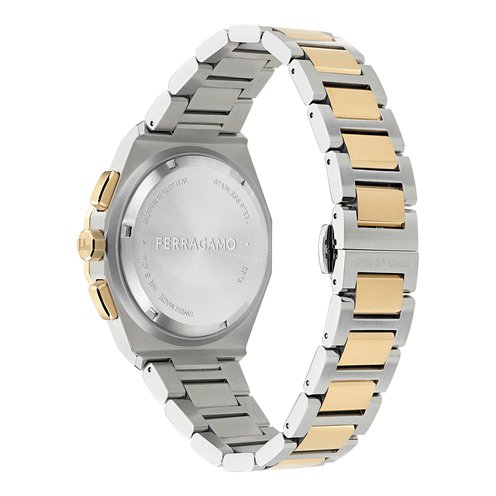 The Ferragamo Edge Chrono combines sporty sophistication with luxury. A guilloché dial, a bold 4-screw bezel in 42mm and a precision chronograph complication embody refined craftsmanship and contemporary elegance.