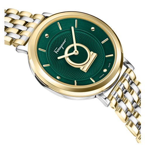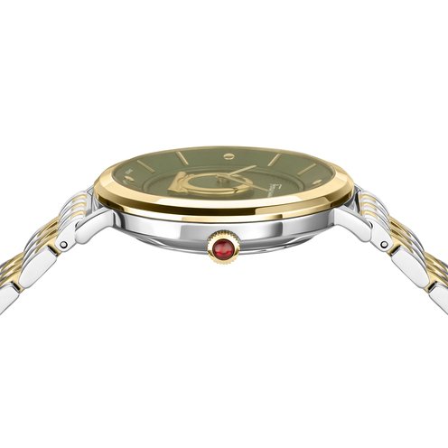 The sophisticated styling of Minuetto is presented, 36MM in diameter, with a steel or two-tone bracelet or a polished saffiano leather strap. The suspended lugs, incorporated in the case, reinforce the idea of lightness and femininity.