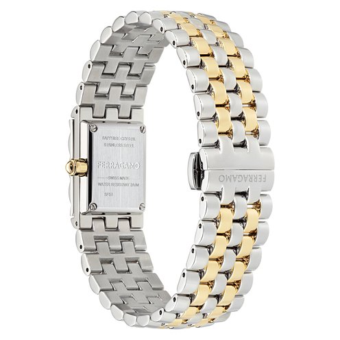 The Ferragamo Secret watch unveils its precious edition as a unique jewel. Crafted with artisanal charm, technical innovation and aesthetic sophistication, it combines the functionality of an exceptional watch with the elegance of a luxurious accessory. At first glance, it appears as a bracelet, but with a gentle press on the crown, it reveals a dial adorned with precious stones.