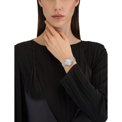 Gancini Twisted is a watch that encapsulates the essence of feminine allure and modern sophistication. The gracefully contoured case, inspired by the beloved Gancini symbol, takes on a new dimension with its intriguing twist and 32mm case.