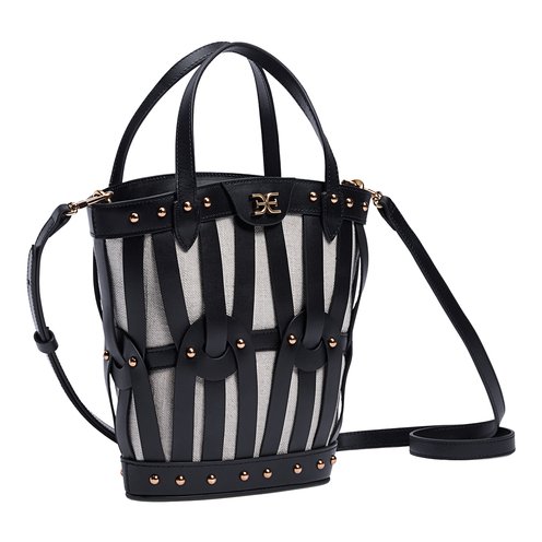 Make a bold statement with the Sam Edelman Bay Small Dye Cut Tote, where exquisite craftsmanship meets everyday functionality. Featuring the Signature SE logo and stunning intricate leather weaving and studding, this tote is a true work of art. Its compact size doesn't compromise on organization, offering inner pockets including a backwall zip pocket and two frontwall slip pockets for easy access to your essentials. Elevate your accessory game with a piece that combines sophisticated design with effortless practicality.