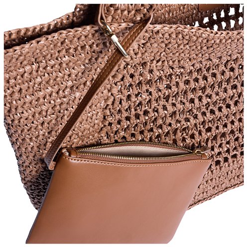 Step into effortless style with the Sam Edelman Marcie Open Weave Raffia Tote, a perfect blend of casual elegance and everyday practicality. Featuring the Signature SE logo and intricate raffia weaving, this tote exudes natural charm and sophistication. The SE charm hangoff adds a signature touch, while the adjustable shoulder strap ensures comfortable wear. Inside, a detachable zip pouch provides easy organization for your essentials, making this tote the ultimate accessory for both chic getaways and daily outings.