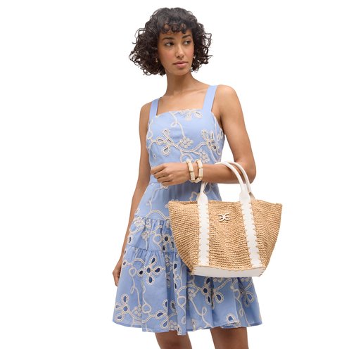 Travel in style with the Sam Edelman Marley Raffia Collapsible Small Tote, the perfect blend of practicality and chic design. Crafted from durable raffia, this tote features a unique split bottom that allows it to fold flat for easy storage, making it an ideal travel companion. Its compact size offers just the right amount of space for your essentials, while the collapsible feature ensures it's easy to pack and carry. Whether you're jetting off for a weekend getaway or need an extra bag for shopping, the Marley Raffia Tote combines versatility, convenience, and stylish functionality in one must-have accessory.