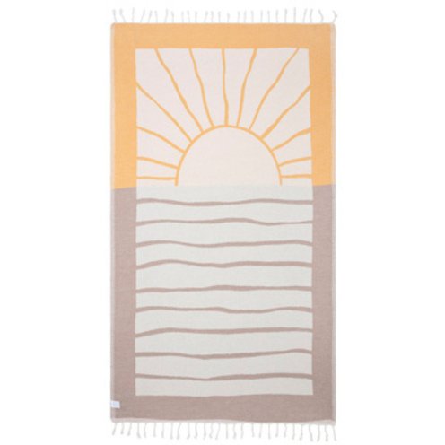 Sunset design, made from Turkish organic cotton for a soft hand feel and a better sustainable product, jacquard single weave, twisted tassels, quick dry and sand resistant.
