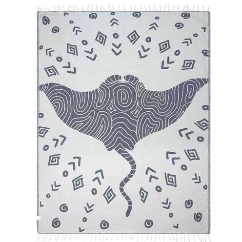 Manta Ray design, made from Turkish organic cotton for a softer hand feel and a better sustainable product, double jacquard weave, twisted tassels, quick dry and sand resistant.