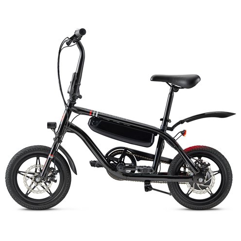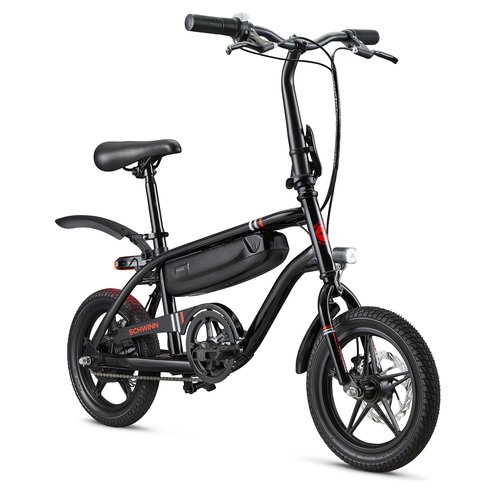 The Schwinn Tornado is an e-bike that’s all about extra-portable fun. The low-profile, compact frame features a folding stem to shrink it down as much as possible for storage or transport. The 250-watt motor enables a top speed of 17.5 miles per hour with the throttle, and pedal assist kicks in automatically should you choose to pedal the Tornado instead. The wide tires let you ride comfortably wherever you take it, and your remaining battery life is shown on the throttle display. Additional features include mechanical disc brakes for all-condition stopping power, removable mudguards to shield you from road spray, and LED lights for nighttime visibility and all-day safety. Give riding a whirl with the Tornado compact e-bike.