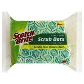 Scrub Sponges, Scrub Dots, Heavy Duty, 6 Pack. 4.4 in x 2.6 in x 0.6 in (111 mm x 66 mm x 15 mm). Scrubs fast. Rinses clean. Removes tough baked-on messes. Scrubs dots rinse clean without trapping food. Even eggs & cheese won't stick.