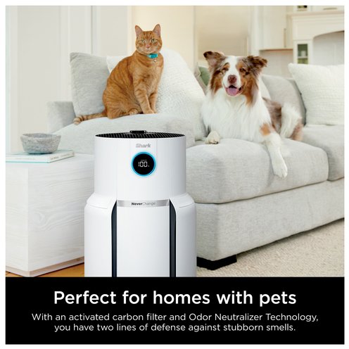 Shark NeverChange™ Air Purifier MAX, designed for 10x longer filter life, save $300 or more in filter replacement costs over 5 years. Covers up to 1400 sq. ft., for powerful purification. Odor Neutralizer Technology guards against odors in your home.